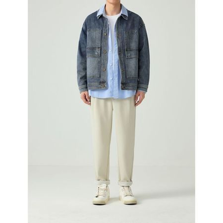 Washed Vintage Distressed Denim Jacket Men's Loose Jacket