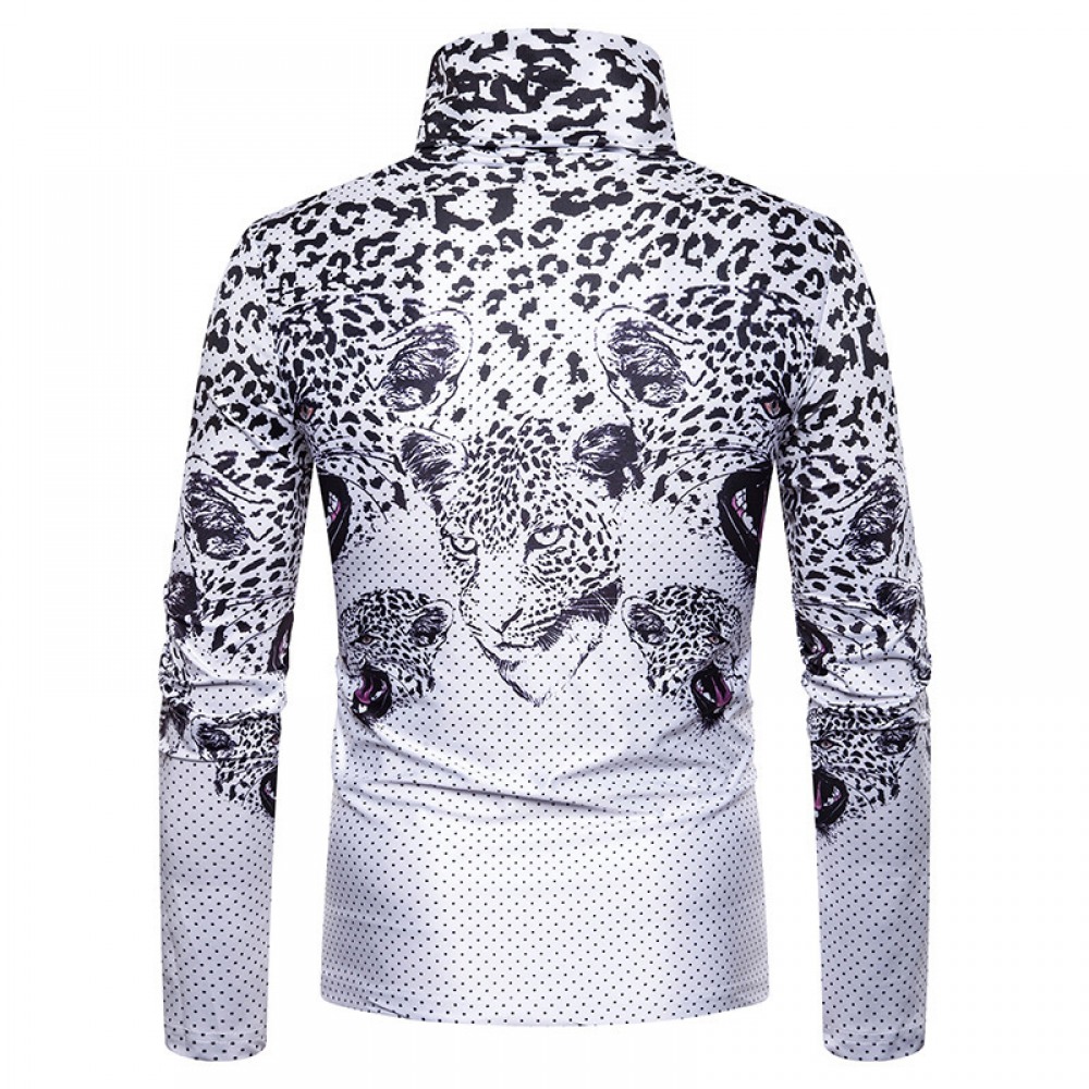 New Men's Large Size 3D Digital Classical Pattern Printing High Neck Long Sleeve T-Shirt Bottoming Shirt