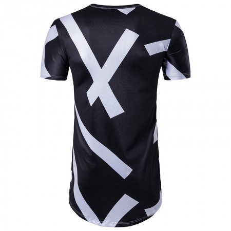 Men's 3D Geometric Stripe Printing Round Neck Hip-Hop High Street Short-Sleeved T-Shirt