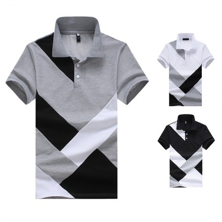 Men's European Size Stitching Short Sleeve Polo