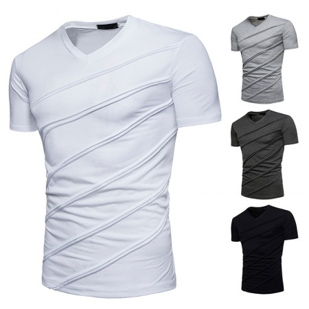 New Men's Plus Size Pleated Short-Sleeved T-Shirt