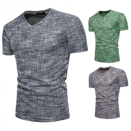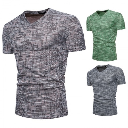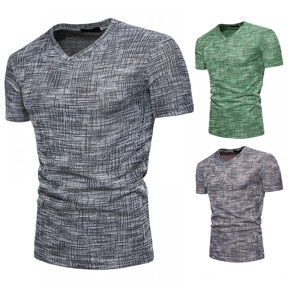 New Summer Men's Short-Sleeved T-Shirt Mens Contrast Striped Slim Casual T-Shirt