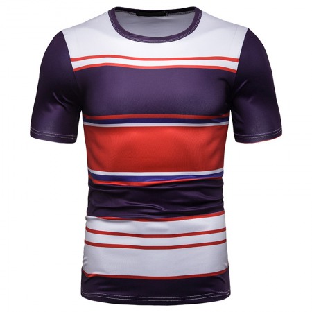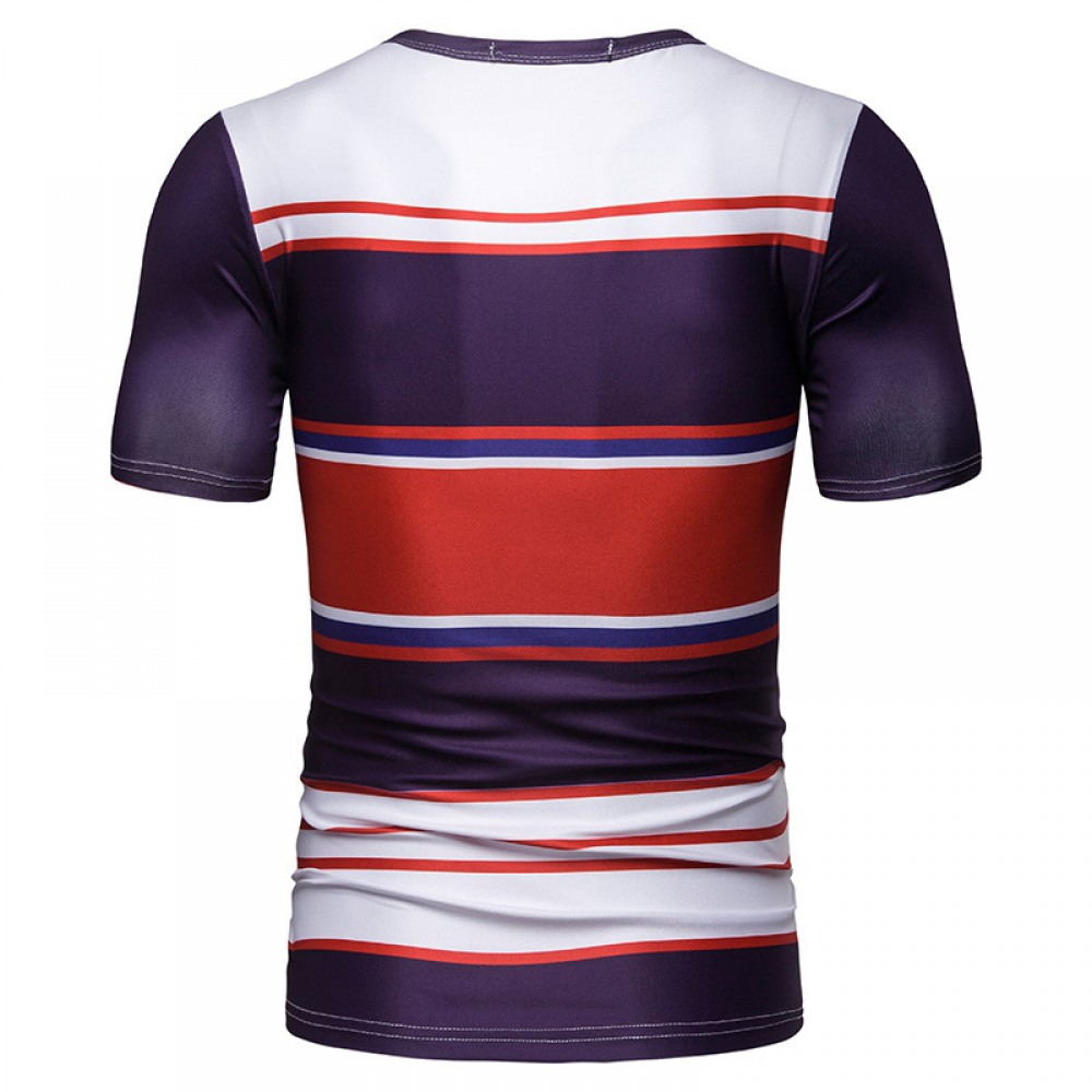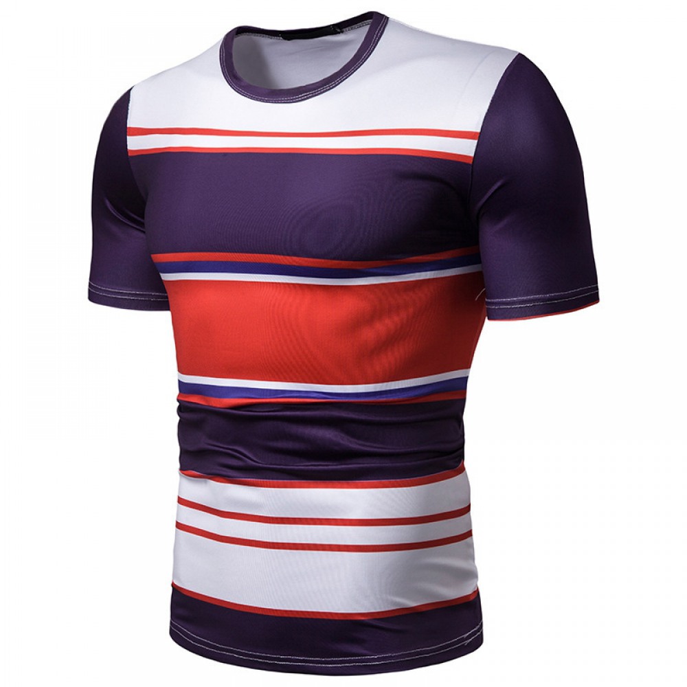New Summer Men's Short-Sleeved T-Shirt Mens Contrast Striped Slim Casual T-Shirt