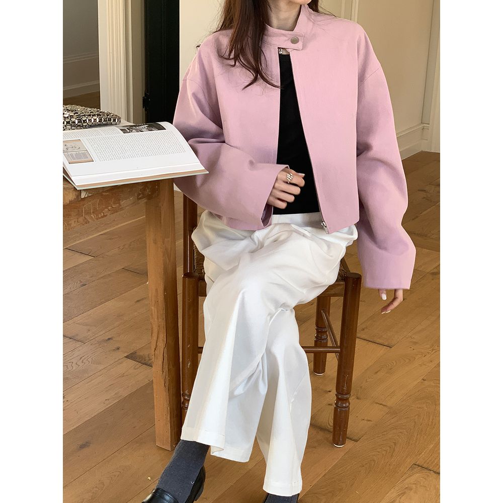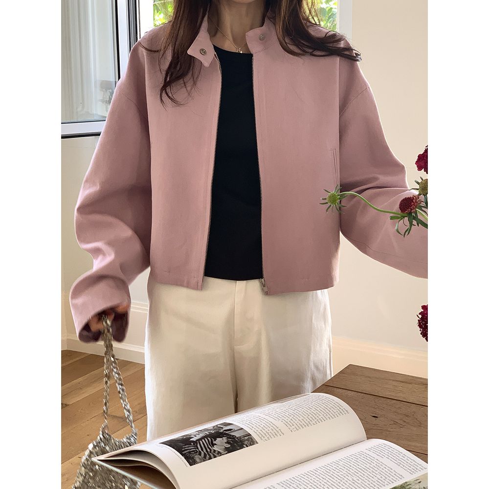 Women's Stand Collar Jacket Outerwear Zipper Cardigan Top